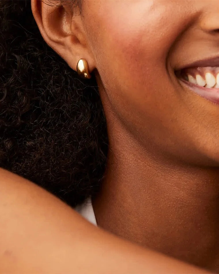 These sculptural dome studs embody the essence of quiet luxury. Available in 18k gold plating or refined silver plating, each pair is crafted in stainless steel for durability and long-lasting shine. Their smooth oval silhouette reflects the light beautifully, offering understated sophistication that transitions effortlessly from day to night.